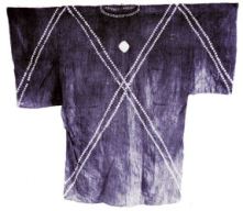 Adire ((AH-dih-ray)) which means tie and dye is the name given to the indigo-coloured dyed cloth used by women of the south western part of Nigeria, Africa using different types of resist dye techniques. Early records show that these tied designs became commercial in the early 20th century when exposure to imported European textile material materialized, and paved the way for local women dyers to innovate new artistic designs on these materials. However, in earlier centuries, adire appears to have been highly regarded; the tunic pictured solely on the right was acquired in the 1640s